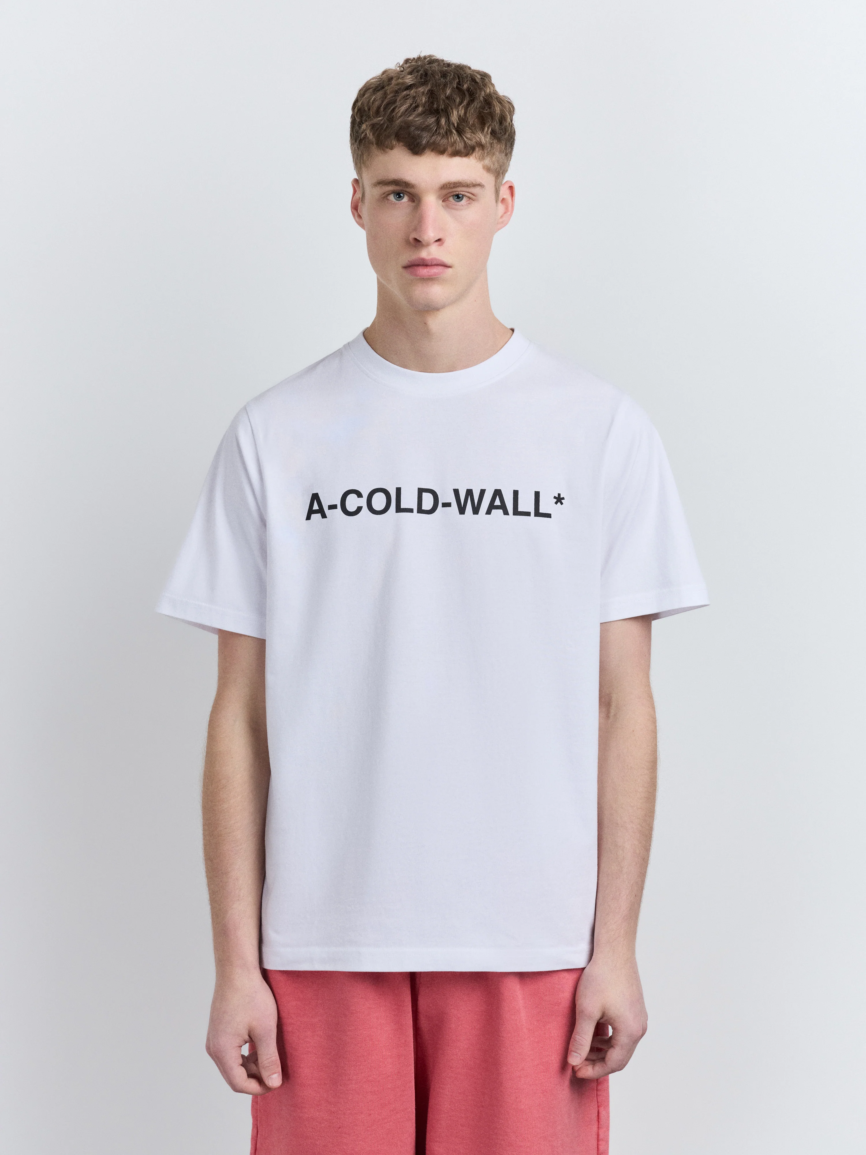 Regular-fit cotton t-shirt with brand print logos at chest and back.