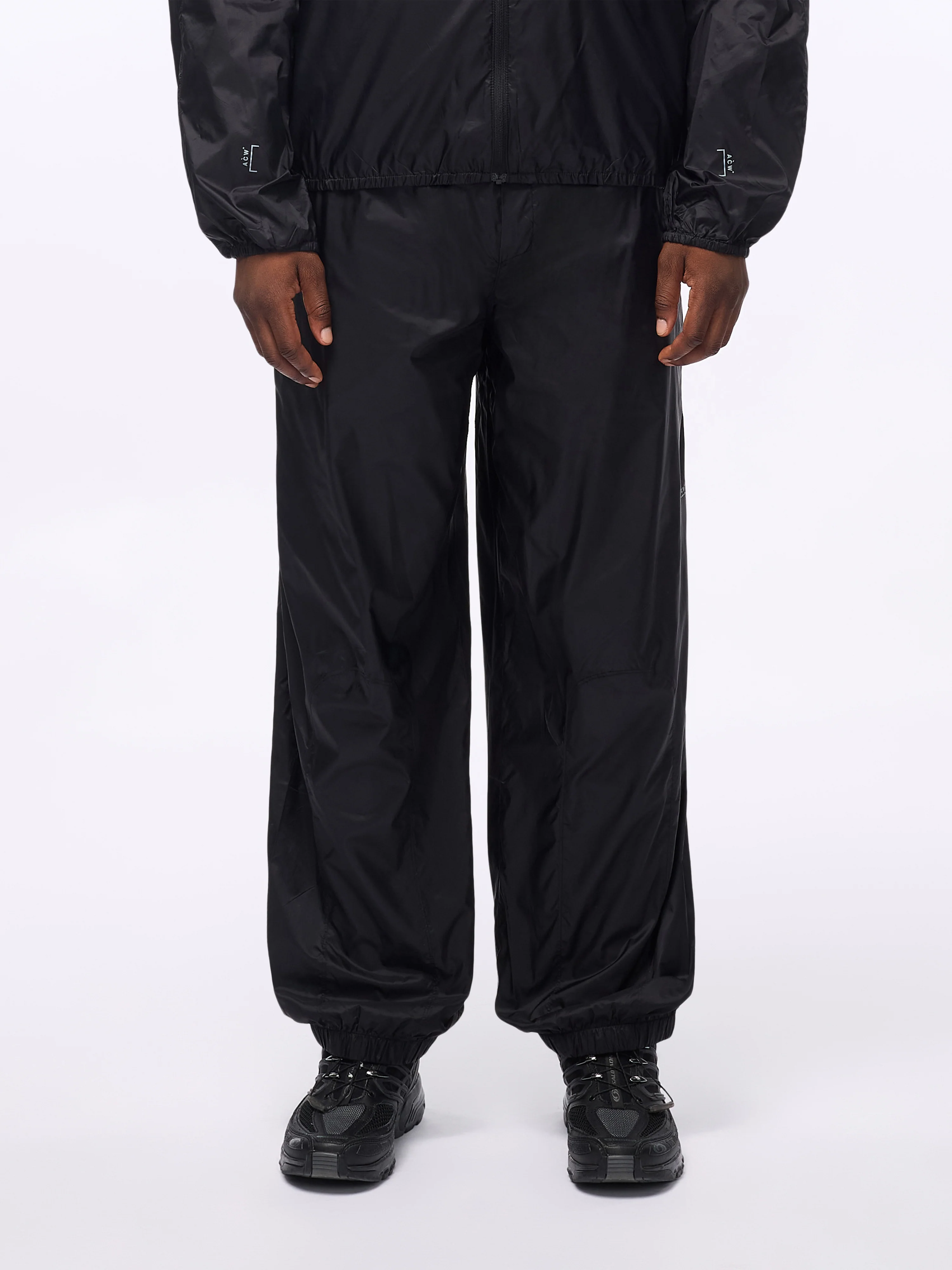 Lightweight, relaxed-fit, water-resistant trackpant with a curved lower leg panel seam.