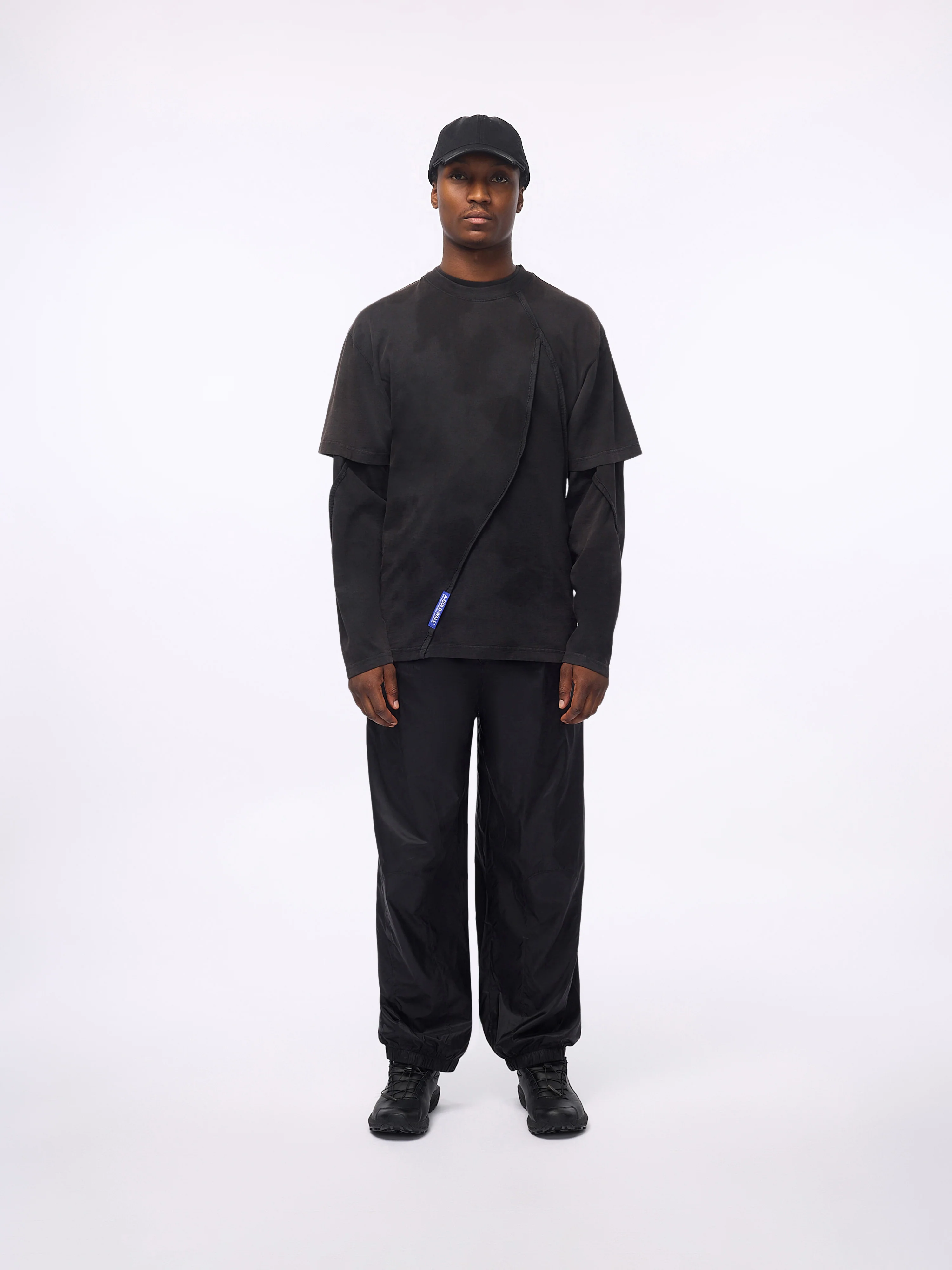 Relaxed-fit cotton T-shirt, featuring external contoured seams with bound edge finish. Garment dyed with tonal patina finish.