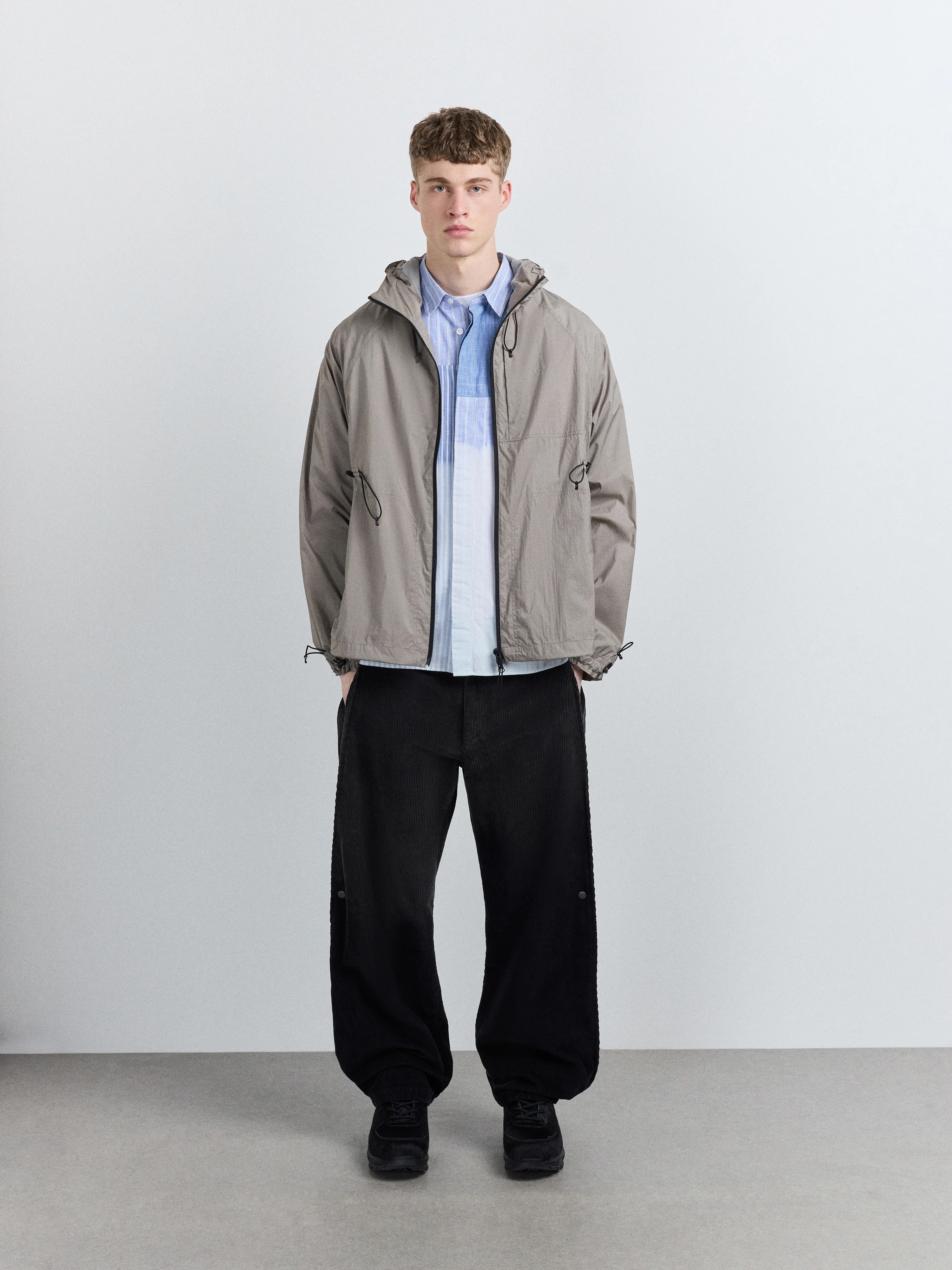 Relaxed-fit lightweight nylon windbreaker. Drawcord channels throughout allow the wearer to adjust the garment's shape and silhouette. Reilly is 6'2 and is wearing size M.