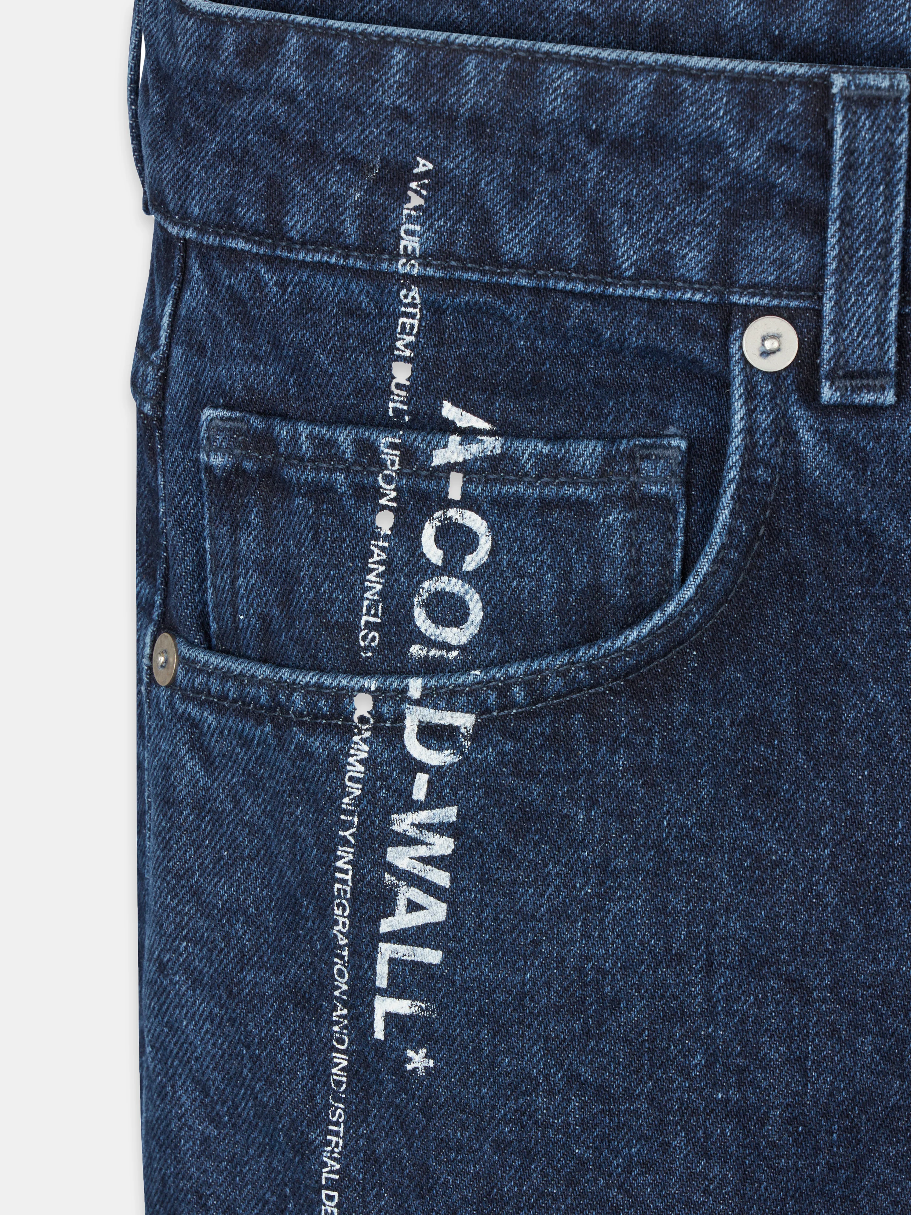The classic utilitarian carpenter jean inspires this relaxed fit, cotton indigo denim pant with a soft, washed handfeel. The signature side leg hammer loop and carpenter's pocket are joined by the season's branded PU patch at the reverse and a typographical ACW* logo print along the front leg.
